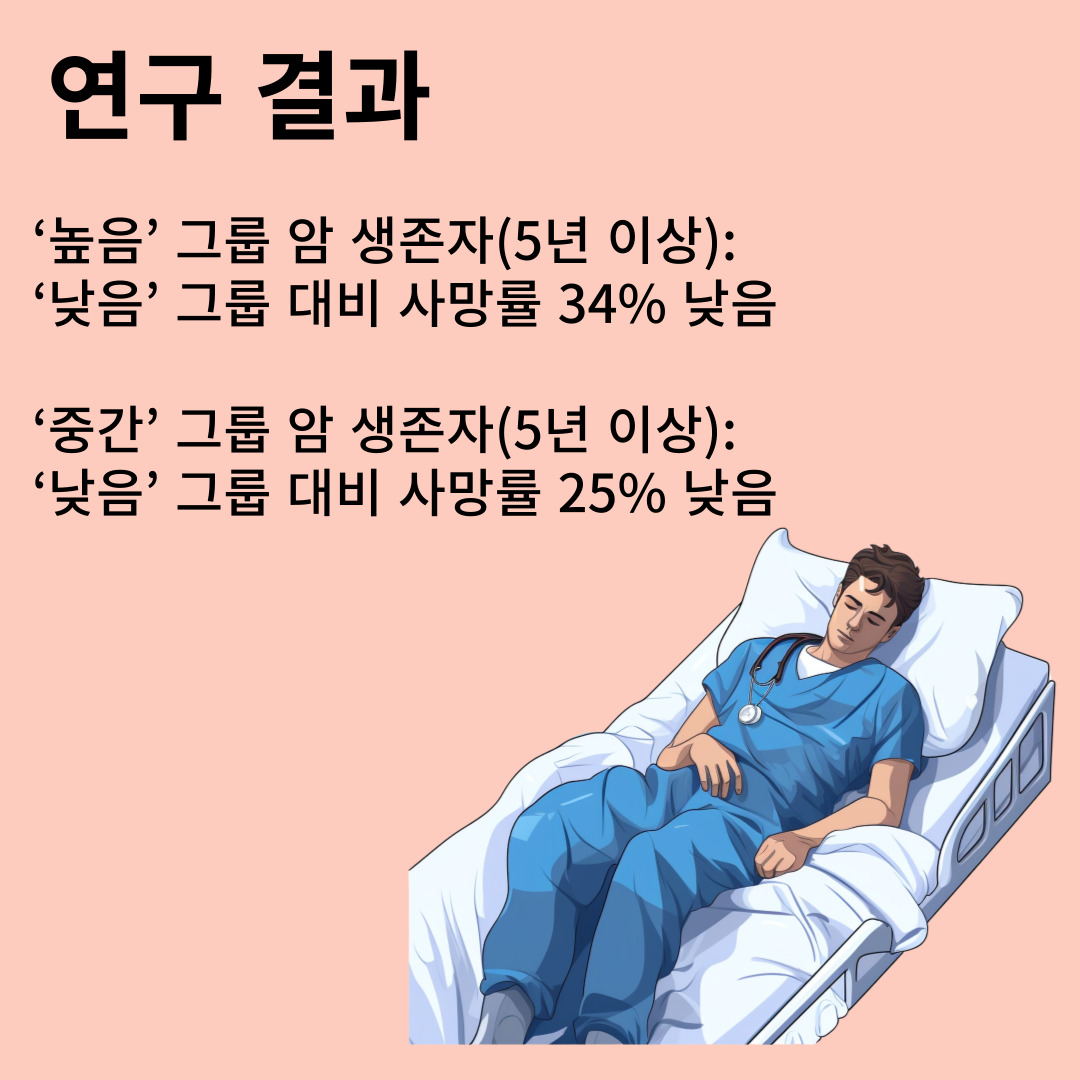 예방 수칙을 잘 준수한 그룹의 암 사망률(5년 이내 사망)이 그렇지 못한 그룹 대비 34% 낮았습니다.