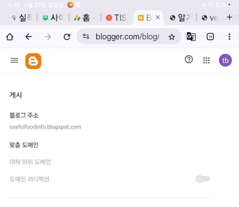 참고로 A타입은 특정 주소를 웹호스팅 서버 아이피와 연결시키는 것이고, C타입은 하위도메인을 만드는 것입니다. 블로그스팟 화면으로 돌아갑니다. 레코드를 추가하고 30초 정도 지난 후 '저장' 버튼을 누릅니다.