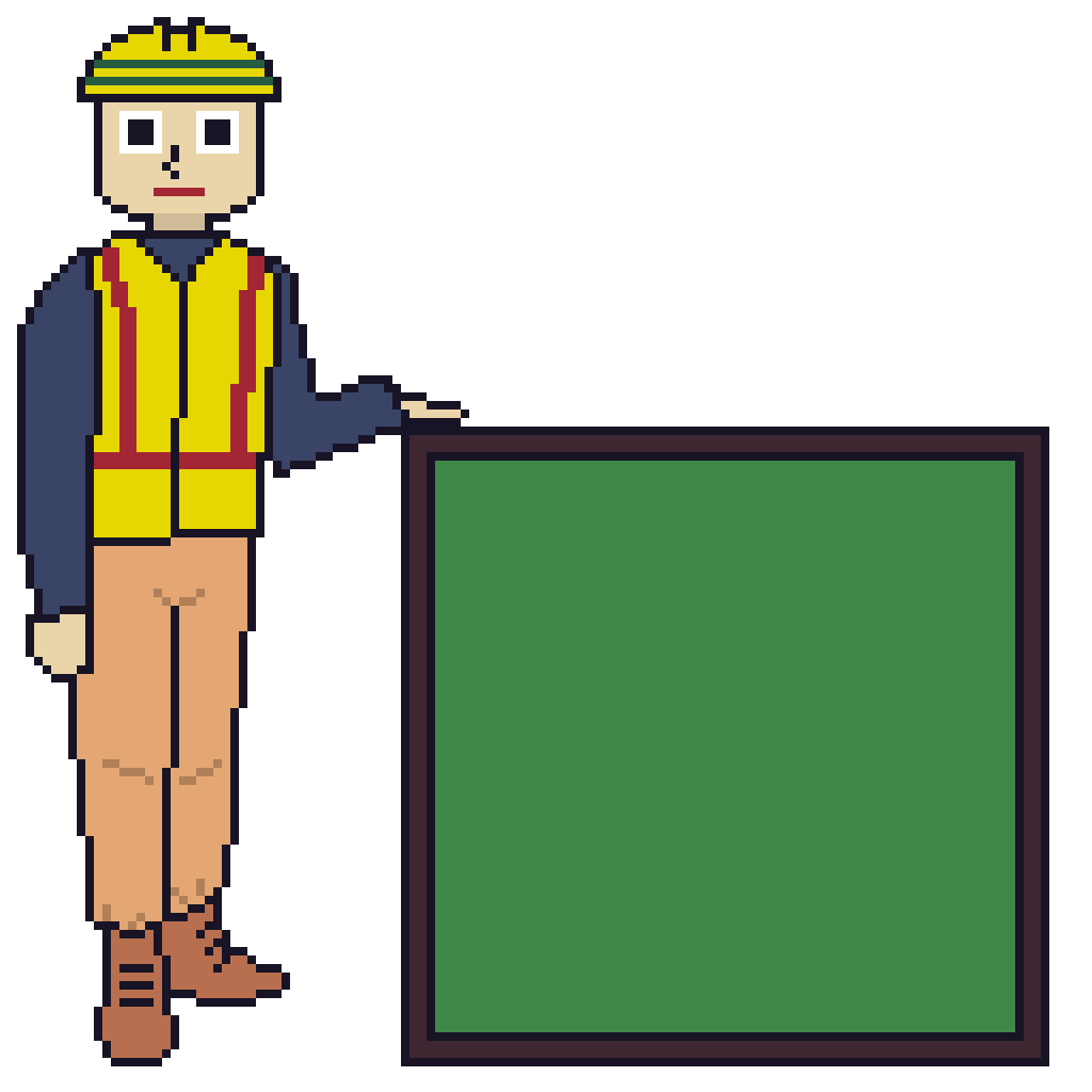안전요원이 전광판 옆에 서있는 모습으로, 시작하는 그림입니다.