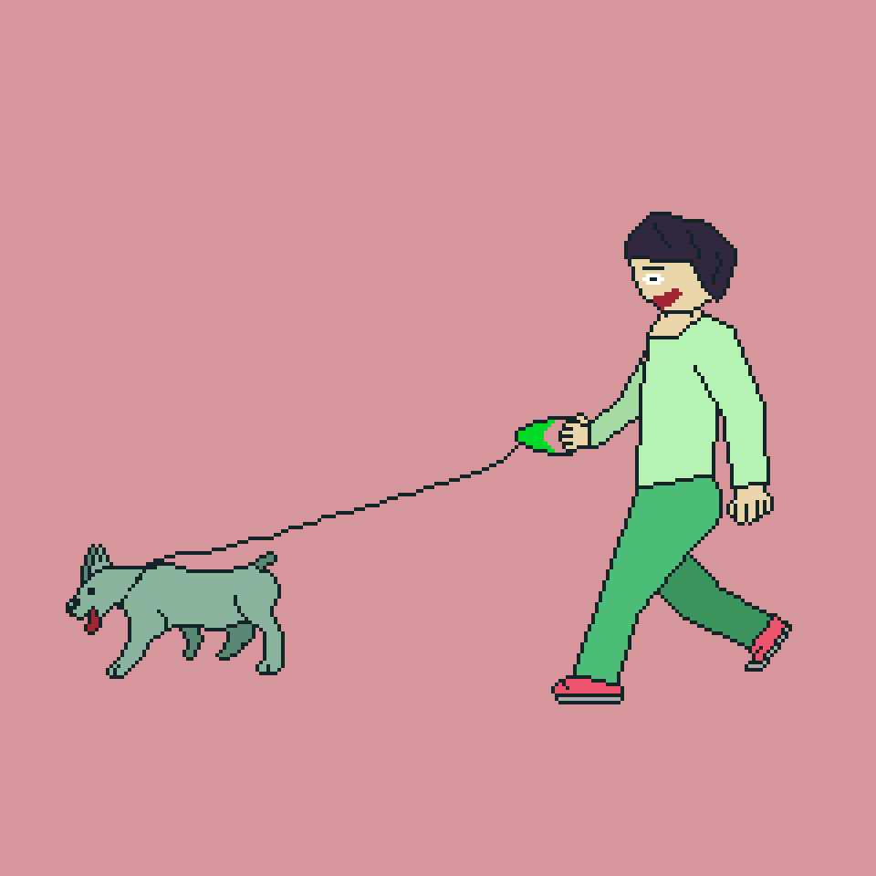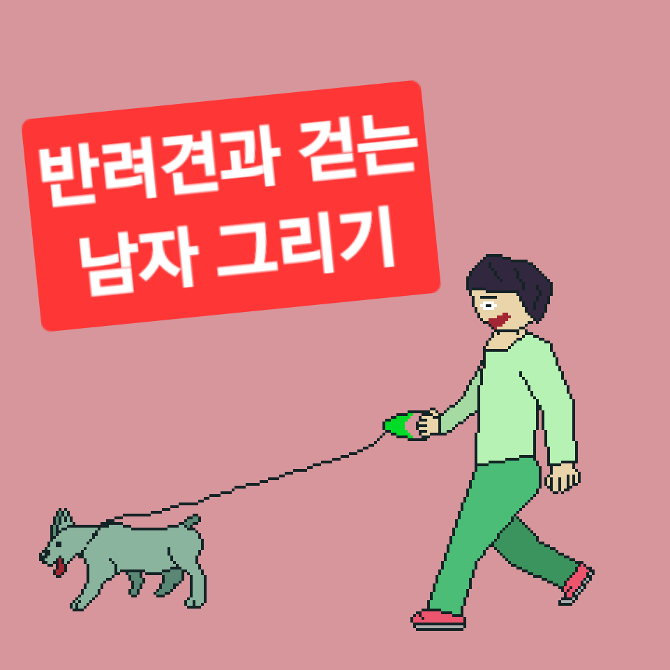 이렇게 반려견과 걷는 남자 그리기 완성입니다.