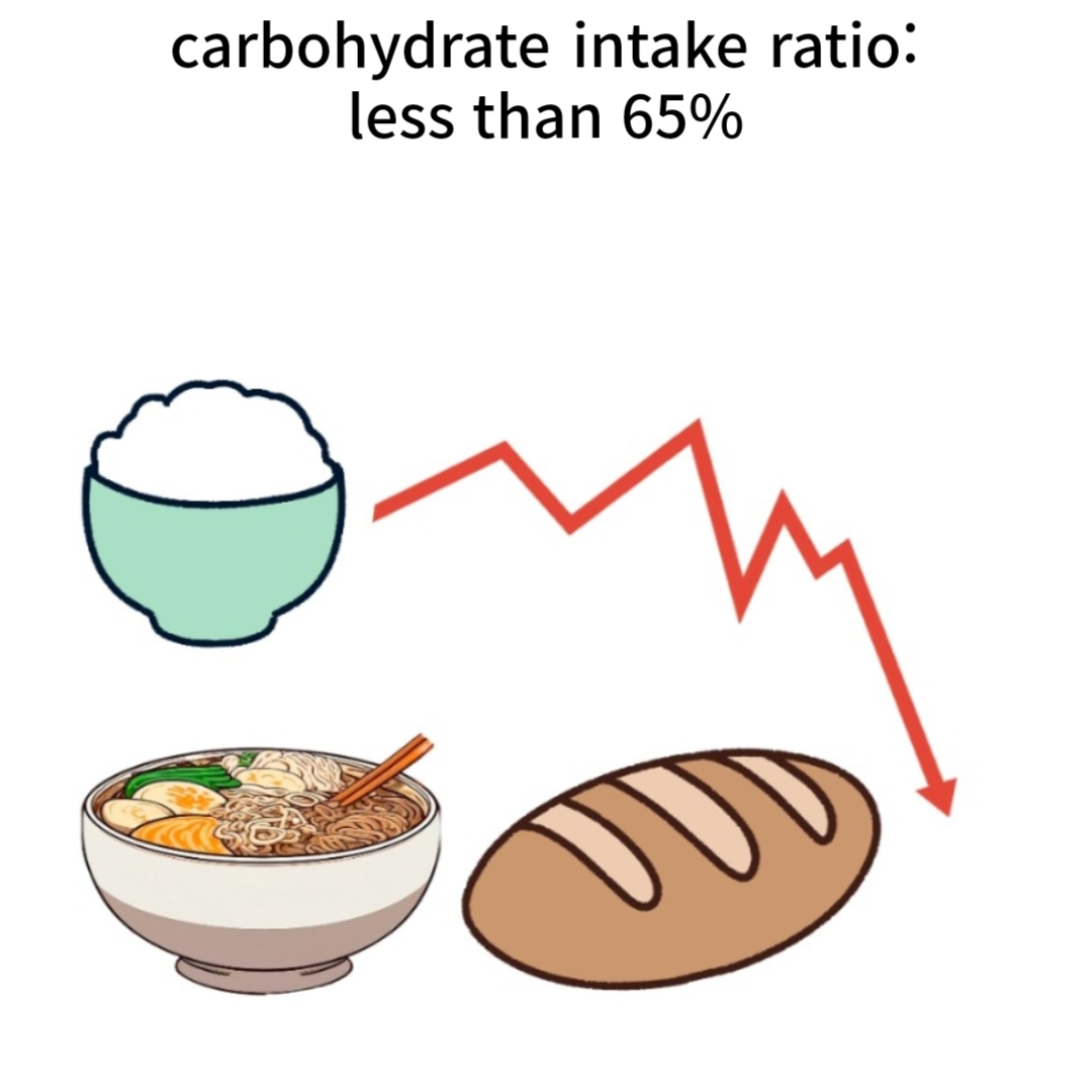 - You should eat 400 to 500 kcal less per day. And make sure your carbohydrate intake ratio is less than 65%.
