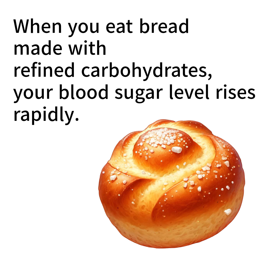 - When you eat bread made with refined carbohydrates, your blood sugar levels rise rapidly.