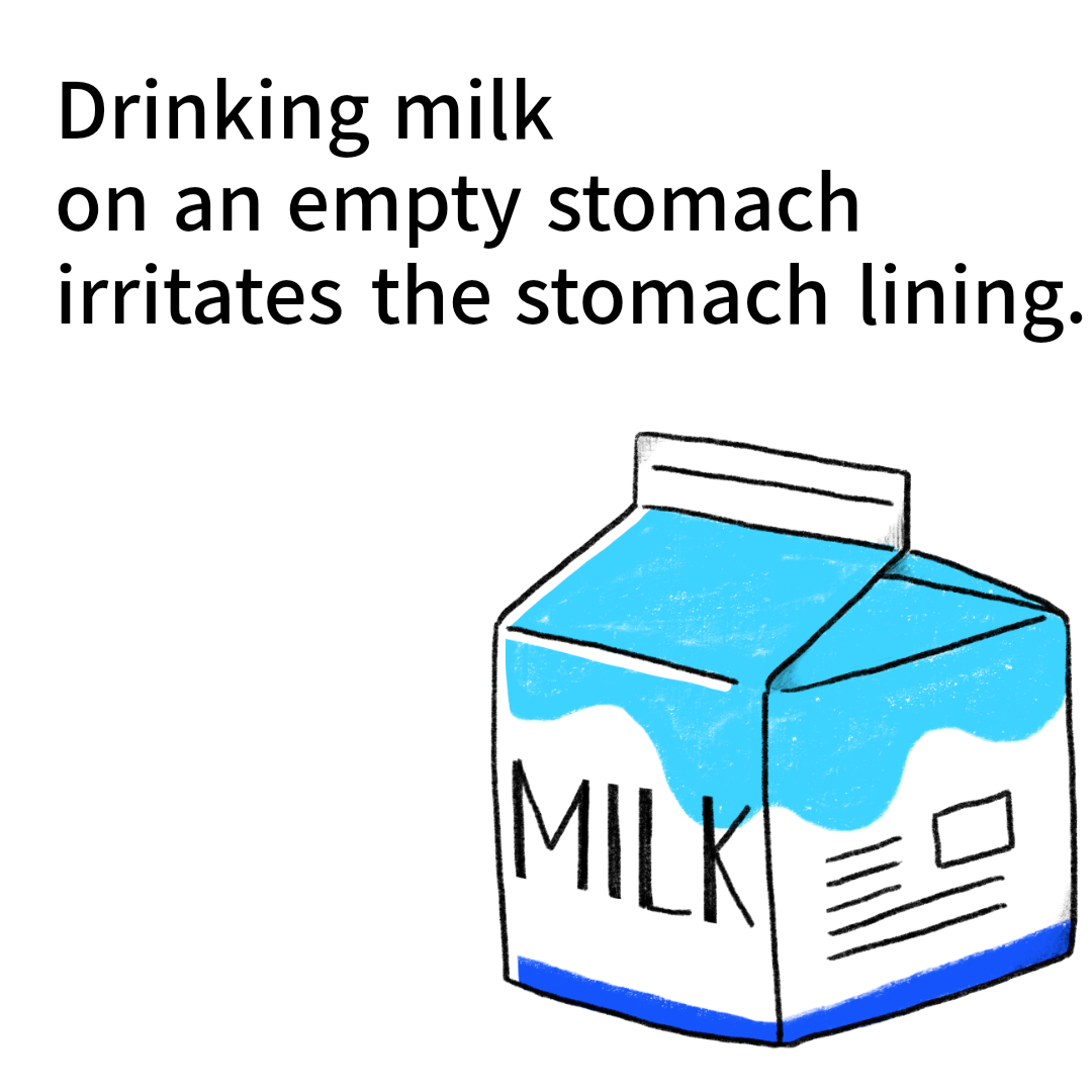 - Drinking milk on an empty stomach irritates the stomach lining.